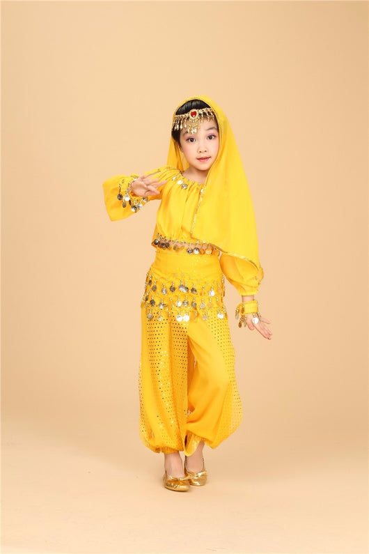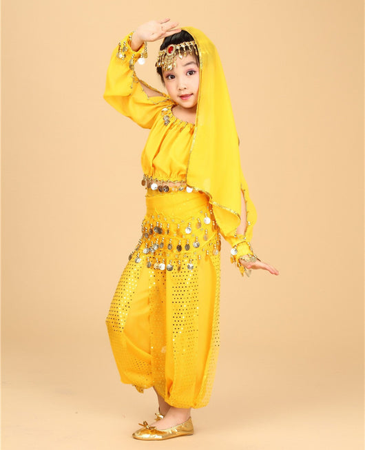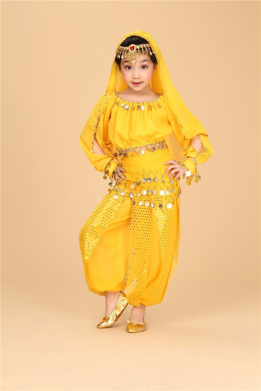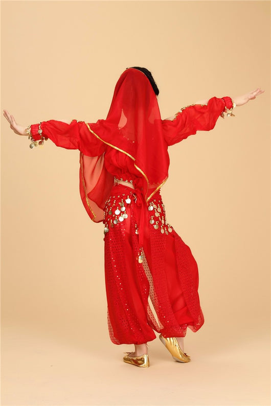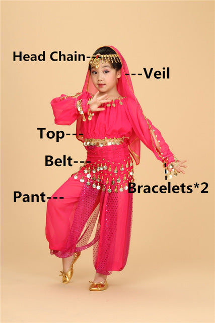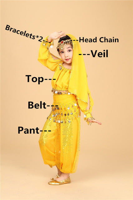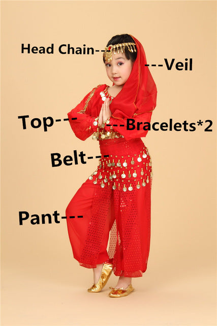 Set includes:  Top + Pant + Belt + Veil + Head Chain + Bracelets*2 (6 pieces)
