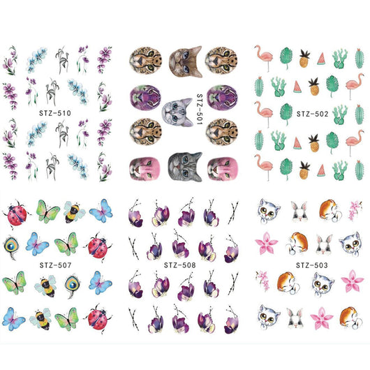 Special Set #5 -12 Sheets Per Pack | Cute Animals And Flora Theme Nail Art Decals